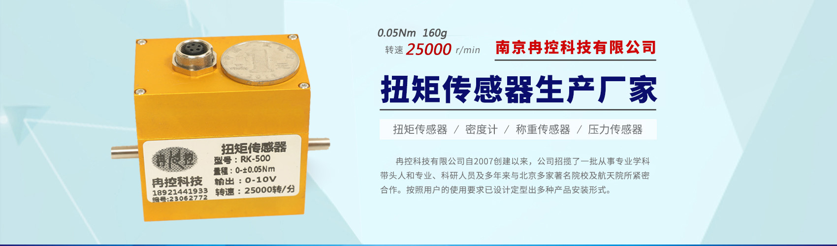 <meta name="description" content="南京冉控科技有限公司(www.rankong.com)主营扭矩传感器,动态扭矩传感器,旋转扭力传感器,法兰盘T40B扭矩传感器,音叉密度计传感器等产品,公司有雄厚的设计能力,有全套机械加工车间及产品生产车间,有一整套质量保证制度及检测设备,欢迎咨询" />